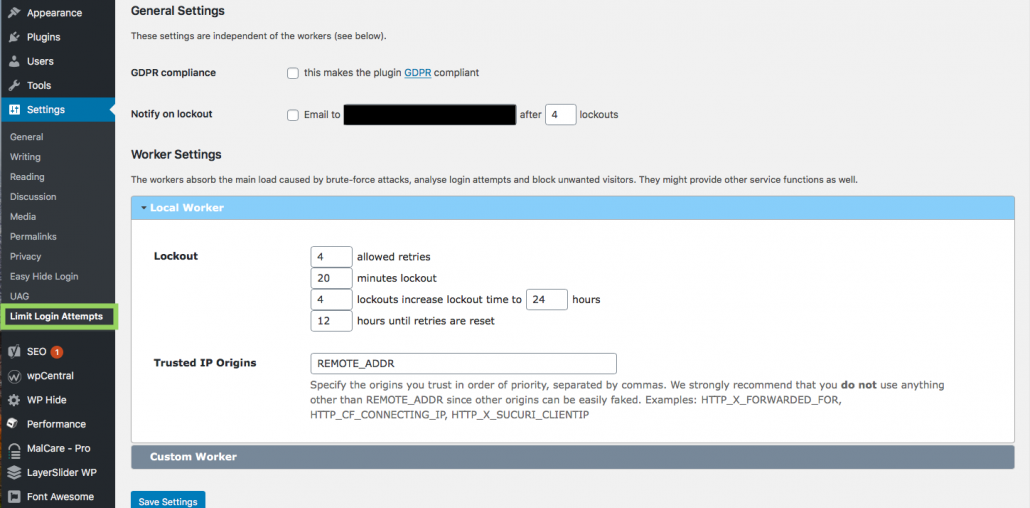 As mentioned above about a Brute Force Attack, let us say that a hacker can access your login page. Limit Login Attempts Reloaded comes in handy because it does like it’s named. You can set the limit of login attempts before the login page lockdown for 20 minutes or however long you set the parameter. That is the greatest thing about this plugin; it will record any IP addresses that try to force their way to pass the login.