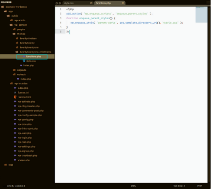 5. In the same directory, create a new file named functions.php and the following code inside the file.