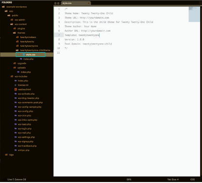 2. Create a new folder within that theme directory. I usually name the child theme after the parent them but attach the child theme afterward like in this example. I turn twentytwentyone into twentytwentyone-child. Do not use spaces for naming.